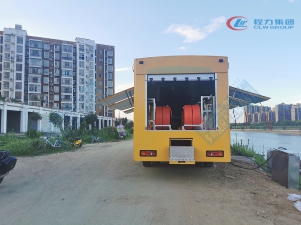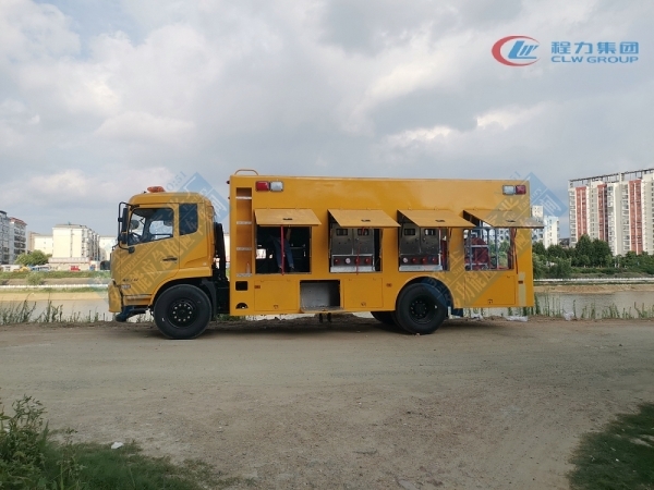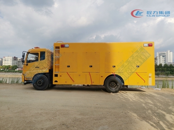 選裝配置:選裝行李架、爬梯、車頂工作臺;選裝不同形狀、結構的警示燈;選裝中隔斷(可選擇開門)、車身兩側可選開上掀門、盲窗、側開門;花紋鋁板;加裝設備工具柜、配電箱、發(fā)電機組、水泵、電焊機、空壓機等線路安裝外接電源系統(tǒng)、(室內燈光照明、探照燈、高桿照明燈等);繞線盤,還可根據(jù)用戶不同需求加裝不同的維修搶險設備、車身制作專用圖案或標識。