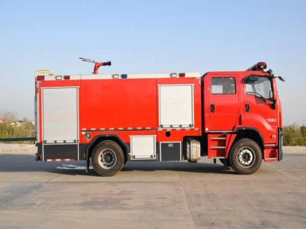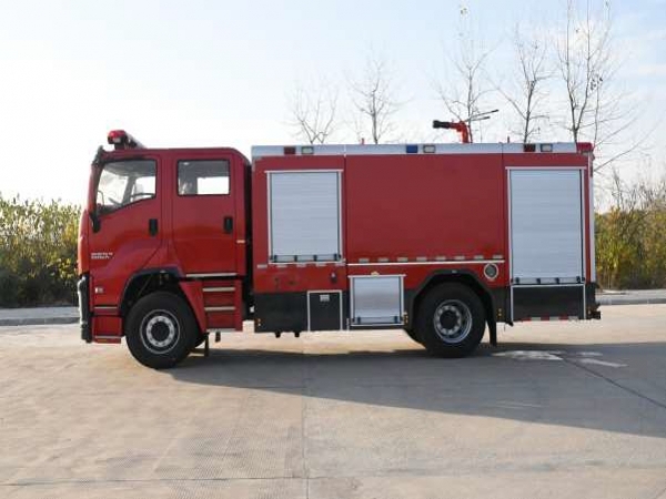 電氣配置 | 駕駛室頂部前端為長排100W警報器及警燈,車身后配有24V/60W火場照明燈一只,車輛兩側上方各配有紅藍相配的爆閃燈,下方安裝安全標志燈,乘員室、器材箱、 泵房內(nèi)均裝有照明燈,回轉警燈開關、通訊設備預備接口。 |